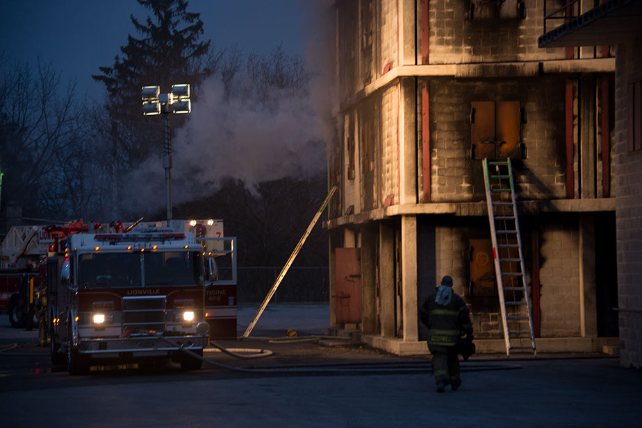 The West Chester Fire Department Training Center has many different facilities for use. We have six major training areas; a class room that can accommodate up to thirty people, a five story tower that has a confidence maze, an apartment simulation, office floor simulation, and can be utilized for high angle rope rescue. The training center also has two burn building for live structural burns, a vehicle rescue area, and a confined space area.