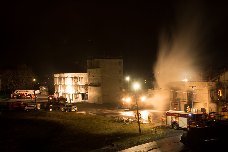 The West Chester Fire Department Training Center has many different facilities for use. We have six major training areas; a class room that can accommodate up to thirty people, a five story tower that has a confidence maze, an apartment simulation, office floor simulation, and can be utilized for high angle rope rescue. The training center also has two burn building for live structural burns, a vehicle rescue area, and a confined space area.